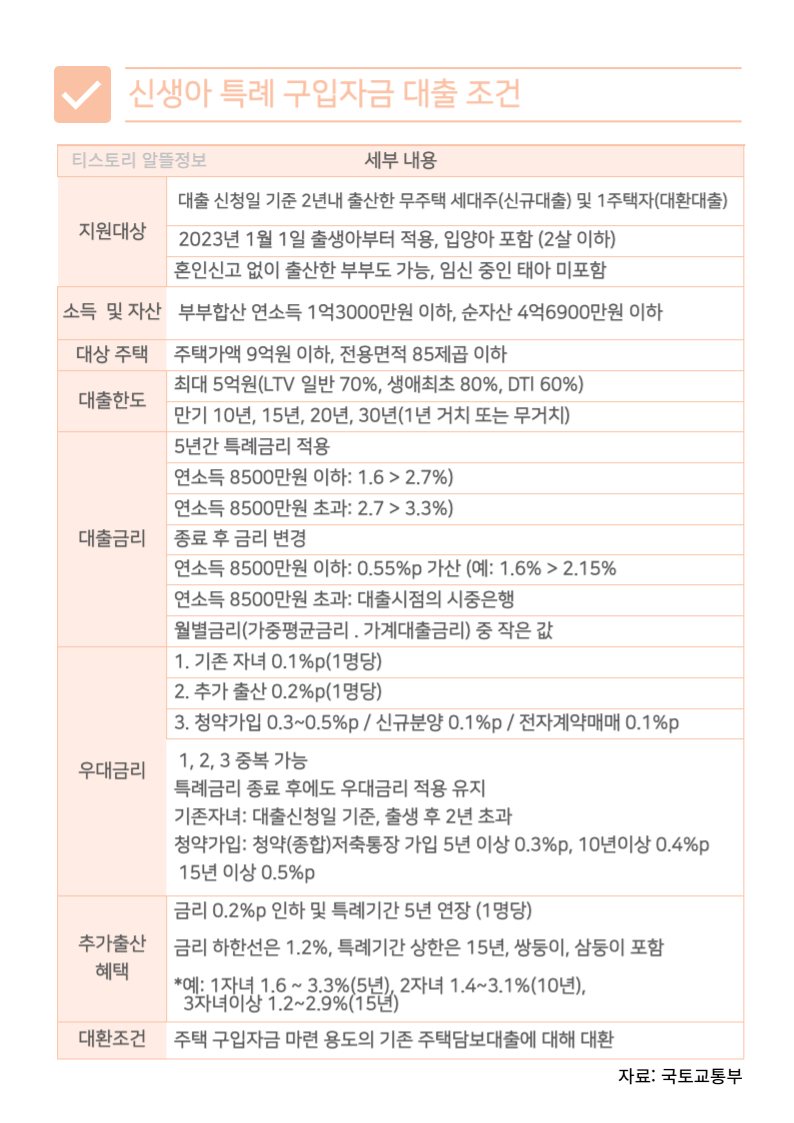 국토부에서 신생아 특례대출 세무시행계획을 발표하였습니다.