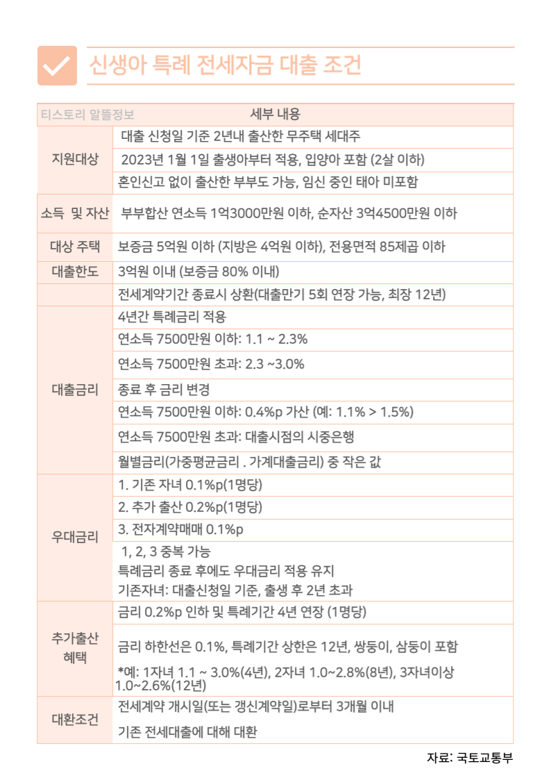 신청일 기준 2년 내 2023년 1월 1일 이후로 출산한 무주택 가구가 특례대출 대상입니다
